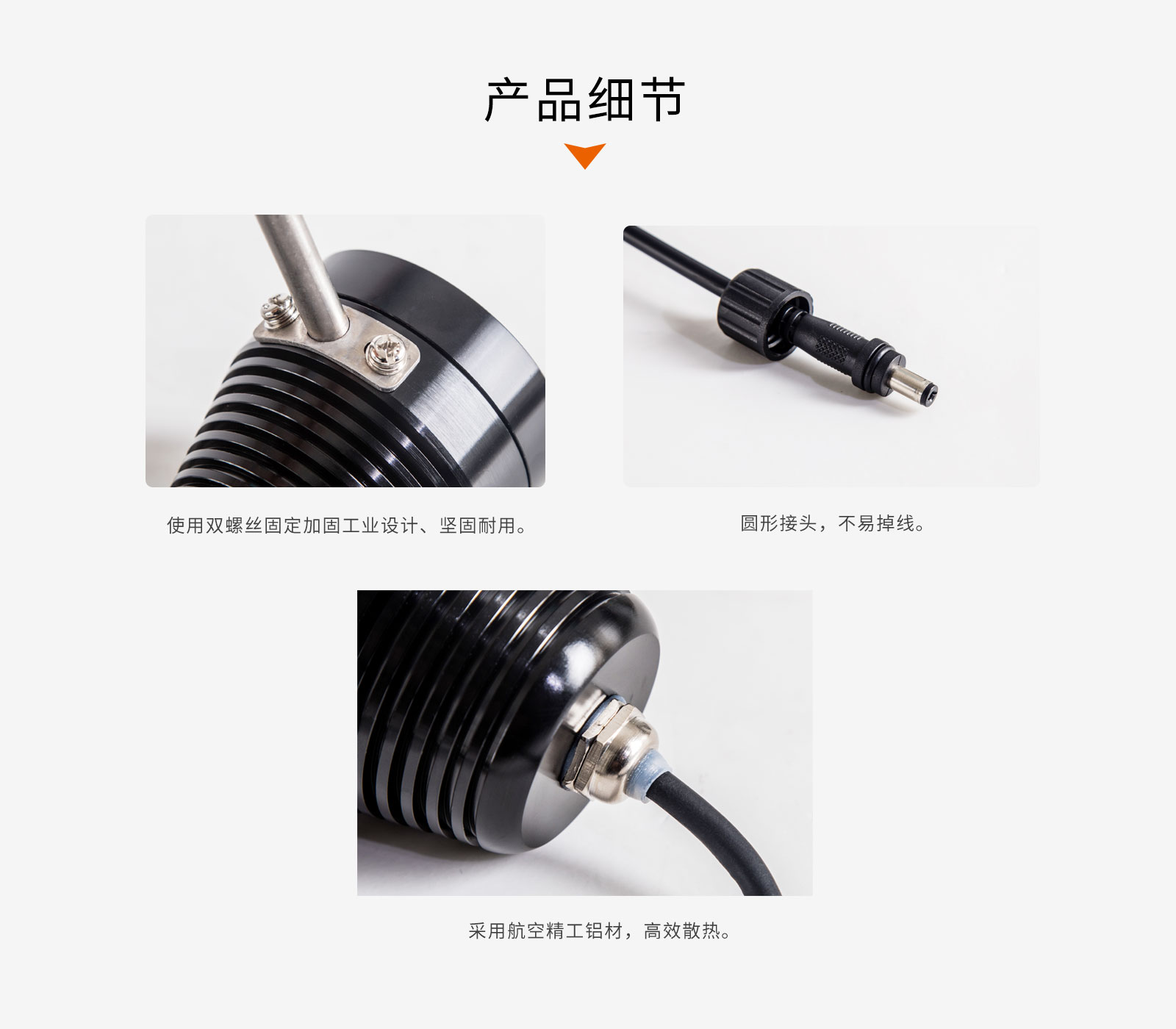 使用双螺丝固定加固工业设计、坚固耐用。圆形接头,不易掉线。采用航空精工铝材,高效散热。